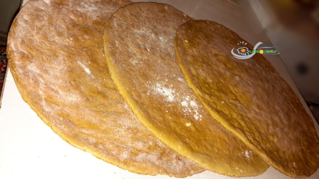 6 Hazırdır 170° C, 10 dəqiqə | Sonda isə list isidilir, arxasına biraz un səpilir, kündələrdən biri listin arxasına oxlov (və ya əl) ilə yayılır və əvvəlcədən isidilmiş 170° sobada təxminən 10 dəqiqə bişirilir (üzərini çox qızartmayın, yüngül qızardıqda çıxardın, yoxsa sərtləşəcək). |