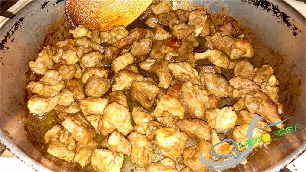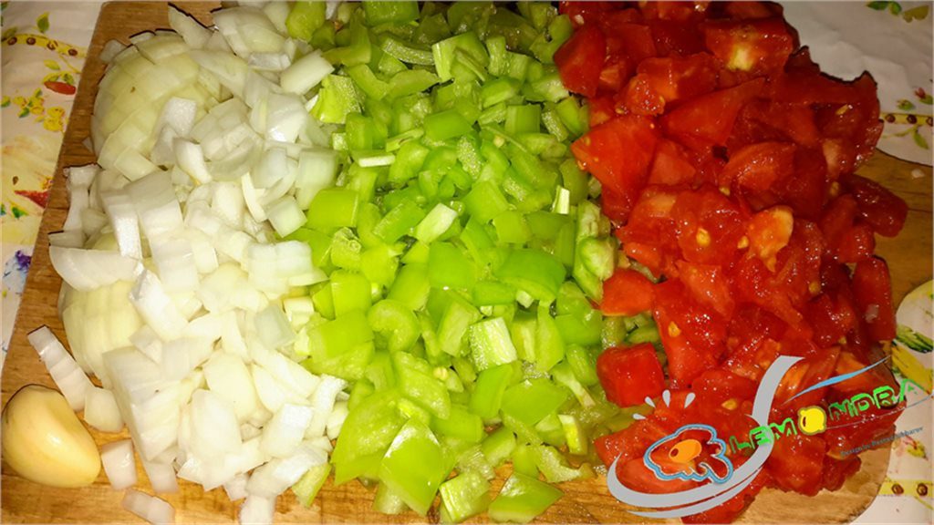 5 Hazırdır 10 dəqiqə | Sonda isə soyulub doğranmış pomidor, kəklikotu, duz, istiot əlavə edilir və pomidorun suyu çəkilib yağa düşənədək (təxminən 10 dəqiqə) bişirilir. |